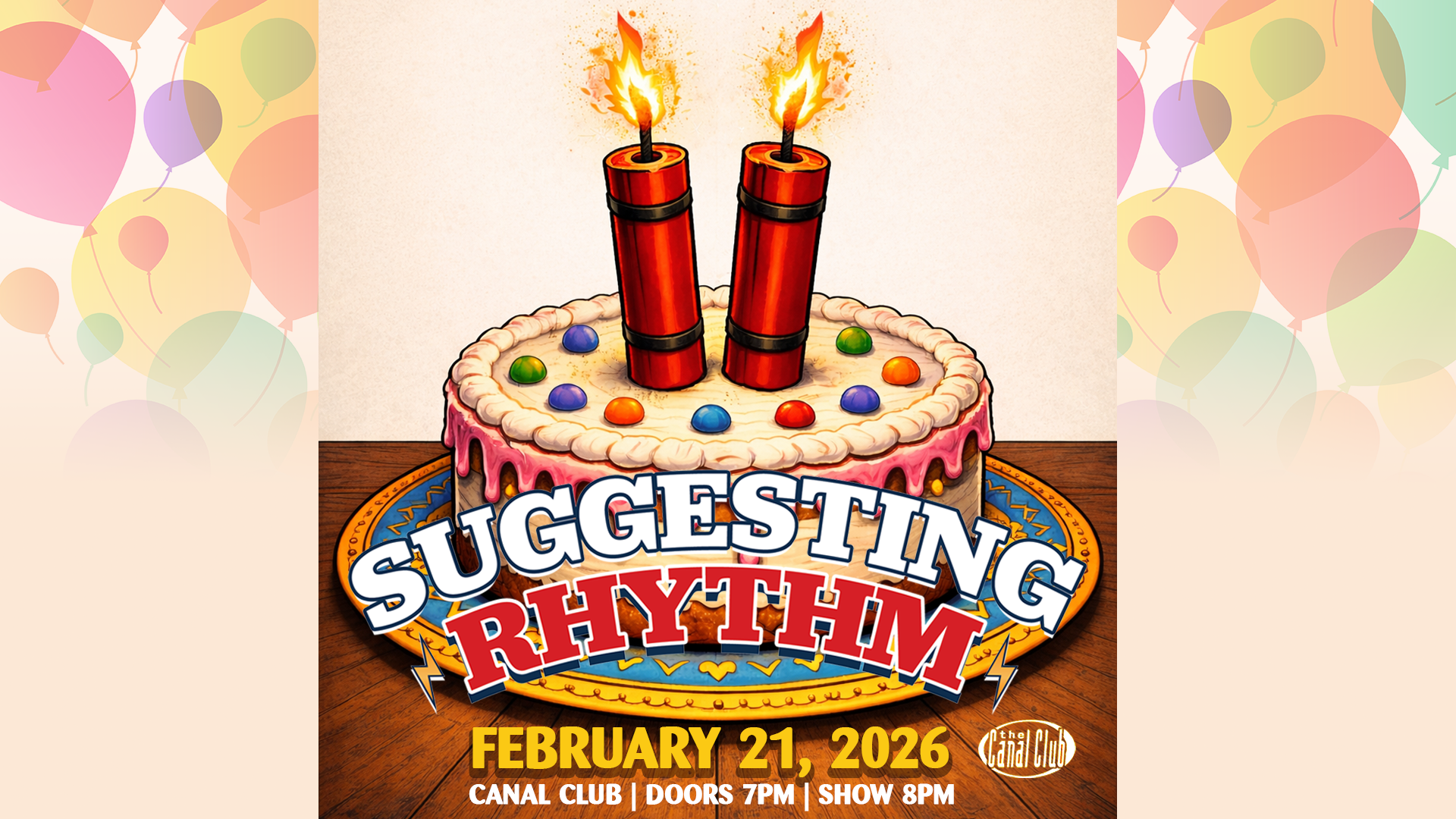Suggesting Rhythm’s 11th Birthday Bash - Join us at the Canal Club on February 21, 2026 as we celebrate 11 years of music, rhythm, and loud nights. Doors: 7PM Show: 8PM - Celebrating 11 years of Suggesting Rhythm with a special night of live music. Tickets & info: https://tixr.com/e/175829