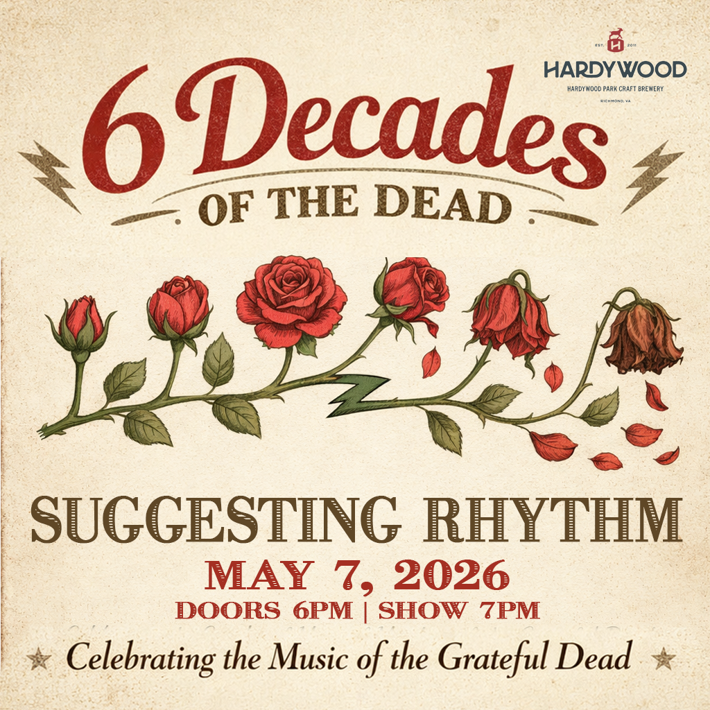 Suggesting Rhythm is a five-piece band from Richmond, VA, celebrating 10 years of bringing the music of The Grateful Dead to life with their unique charm and style. Founded in 2015, the group features Steve Barnard, Ed Bray, Adam Drudge, David Oakley, and Jeff Rothman. For a decade, Suggesting Rhythm has been a staple of the RVA music scene and beyond, captivating audiences with their heartfelt renditions of Grateful Dead classics.